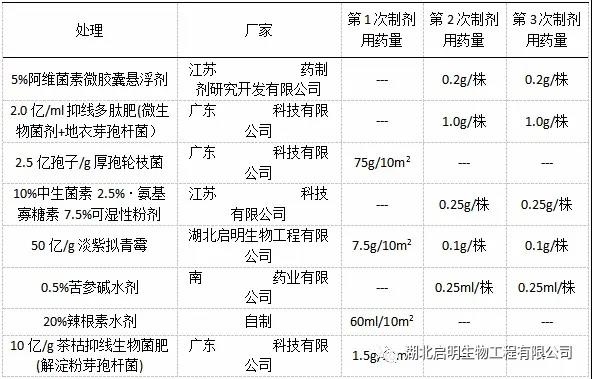 相對(duì)而言,8種生物殺線劑以5%阿維菌素微膠囊懸浮劑的防治效果最高,其按每株0.2ml制劑用藥量連續(xù)施用2次后,病情指數(shù)為1.39,病指防效為61.5%。20%辣根素水劑和50億/g淡紫擬青霉也具有一定的防治效果,處理后的病指防效均為46.1%。抑線多肽肥、厚孢輪枝菌、中生菌素·氨基寡糖素、苦參堿和茶枯抑線生物菌肥對(duì)山藥線蟲病基本無(wú)效,這估計(jì)與試驗(yàn)地線蟲病發(fā)生太輕及試驗(yàn)誤差有關(guān)。